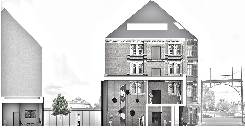 The site is located in central Glasgow and it is an old Pipe Factory, which is currently used as studio space for local artists. The project brief is for an extension of 250sqm to the Pipe Factory, which would extend the ground floor gallery with additional exhibition space, cafe and toilet facilities. The project was developed by multidisciplinary team consisting of myself (architecture student), two fourth-year structural engineers (Ian Goffin and Ryan Gray) and a quantity surveyor (Craig McEwan) aiming to get out the knowledge we all gained through our studies and with a minimum help from the tutors to integrate the architectural design with structural practicality , so it could be presented to our client (The Pipe Factory community) providing realistic cost.