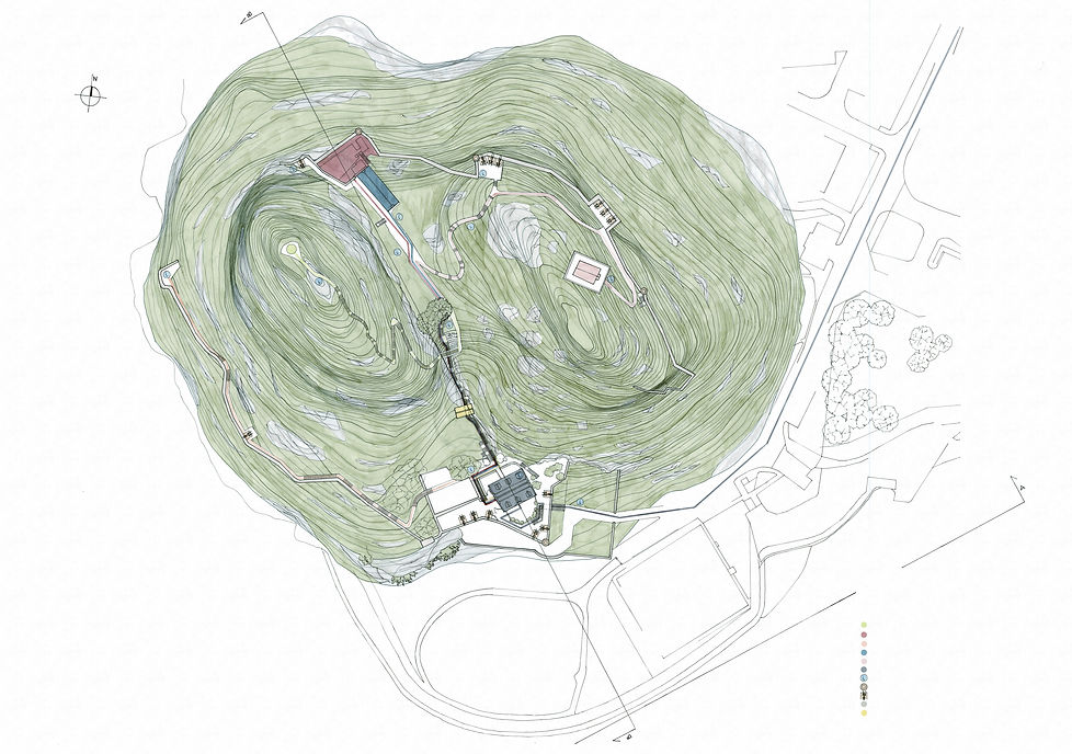 Dumbarton Castle was the primary location on which the main two projects for Stage 1 took place. For the purpose, we were all asked to work together in order to produce detailed plans and sections, on which we could further base our design proposals. We were provided with full geodetic equipment and machinery, so we can accurately record the topographic conditions of the site. The drawings were supposed to be individually hand- drawn using the survey data. Moreover, each student had to do an in-depth research and include specific information in the produced drawings, which in my case was focused on the paths through the castle and main tourist points.
