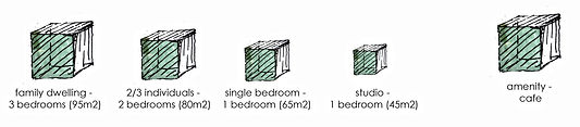 Once the “big” site (site 3) had been chosen, the relationship between volumes and the potential arrangement of different dwellings was put in consideration.